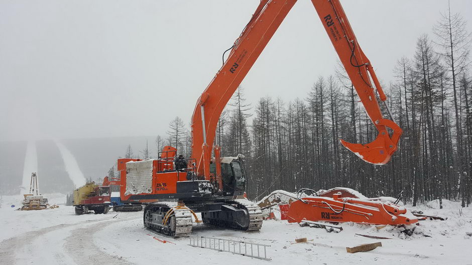The company RESCHKE produced an extended working equipment for the Hitachi ZX470 and ZX670 excavators working on the project. In total, 3 sets of SRW were designed and manufactured for each excavator - a length of 14, 18 and 22 meters. The equipment completely corresponds to the technical task of the customer and is compatible with excavators in all parameters. The technique can be equipped with a different length of the ROV, depending on the depth of a particular section of the river.